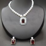 The Blush Radiance Pearl Necklace Set exudes softness and sophistication with every detail. This charming set features a radiant pastel pink rectangular stone, gracefully framed by sparkling crystals and suspended from a lustrous line of ivory pearls. The matching earrings mirror the pendant’s elegance, creating a harmonious look that blends classic pearl beauty with contemporary blush tones. It is the ideal choice for those who love understated glamour with a royal touch.