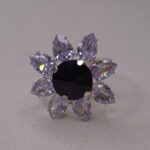 The Midnight Bloom Crystal Ring is a captivating statement piece designed to evoke the mysterious beauty of moonlit gardens. At its center sits a brilliant deep aqua-blue round stone, surrounded by a dazzling halo of lavender-toned teardrop crystals arranged like delicate flower petals. Set in a high-polished silver-tone base, this ring merges bold brilliance with feminine elegance, making it an irresistible choice for any style-conscious woman.