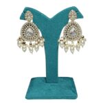 Bold and captivating, the Midnight Glimmer Black Chandbali Earrings bring together classic Indian craftsmanship with contemporary elegance. At the heart of each earring lies a glossy black triangle-shaped stone, framed with sparkling white crystals in a gold-toned setting. The look is completed with a cascade of faceted black bead drops that sway gracefully, making these earrings a statement of timeless beauty and dramatic flair.