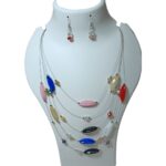 🔷 Features: Lightweight multi-strand necklace with oval acrylic beads and clear crystal accents; includes matching dangle earrings