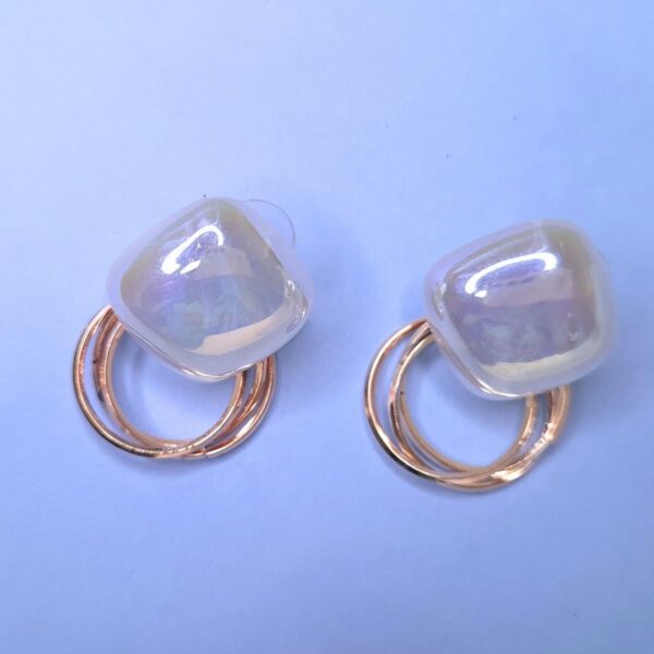 🔷 Features: Glossy opalescent square studs that catch light from every angle, polished dual metallic hoops for a hint of structure and contrast