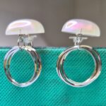 🔷 Color: Iridescent ivory with hints of pearl green and soft blue tones, paired with silver-toned hoops