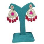 Drenched in rich hues and crafted with refined artistry, the Royal Amethyst Drape Chandbali Earrings are a luxurious tribute to traditional Indian elegance. Featuring a brilliant purple triangular stone at the center, encased in a lattice of sparkling white crystals and suspended from a gold-toned frame, these earrings are completed with deep amethyst-colored drop beads that add movement, grace, and a regal charm.